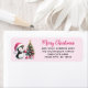 These unique pink Christmas return address labels feature the "Merry Christmas" saying in casual script font and a cute penguin in a pink Santa hat decorating the Christmas tree. The template makes it easy to type your address before ordering.