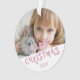 Pink Merry Christmas Family Holiday Photo Ornament. Change the photo with your family or kids photo and make a great holiday keepsake ornament or a unique gift for your family, grandparents and close friends. Create your own personal Christmas ornament.