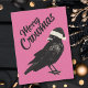 This pink vintage Merry Crowmas Christmas postcard features a crow with a Santa hat and custom text. Keep the "Merry Crowmas" phrase or change the text to your liking.
