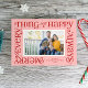 This festive holiday card features the words "merry everything and a happy always" in a frame around a single photo on the front with space for a second photo on the back. It also has space for your name as well as the year.