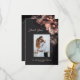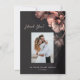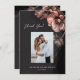 This elegant contemporary wedding thank you card features pink shiny metallic flowers on a black background and an elegant modern handwritten script. Matching wedding stationery available.