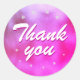 Pink Metallic Foil Star Girly Thank you Sticker. The design has stars on a pink, purple metallic background.