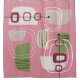 A kitschy 1950's retro-inspired abstract art with a pink background and green & tan bowl shapes, as well as various black and white lines.