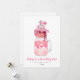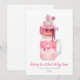 Illustration of a pink milkshake topped with peppermint candy, candy cane, whipped cream, sprinkles, and Christmas tree shaped Christmas cookie. Personalise the name and year.