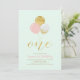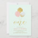 Pink, Mint & Gold Balloons 1st Girl Birthday Party Invitation
