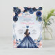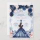 Pink Mis Quince Navy Blue Floral Silver Crown Quinceañera Invitation