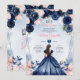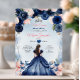 Pink Mis Quince Navy Floral Crown Quinceañera Invitation
