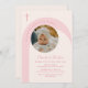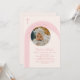 Pink Modern Boho Arch Cross Girl Photo Baptism Invitation