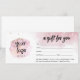 Add your business logo to this pink watercolor, modern, minimalist business gift certificate to have a professional, elegant gift certificate for clients. Nice thick paper and matching envelopes look polished and professional.
