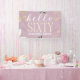 Welcome the fabulous sixties with this chic and stylish birthday banner! Featuring a soft mauve background with elegant gold accents and delicate floral illustrations, this design exudes sophistication and charm. The bold "Hello Sixty" text, paired with a customisable name, makes it the perfect centerpiece for a milestone celebration. Ideal for indoor or outdoor use, this banner adds a touch of elegance to any party decor, making the occasion truly unforgettable.