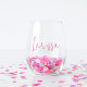 Pink Modern Script Name Bachelorette Bridal Party Stemless Wine Glass