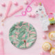 Pink Modern Watercolor Tropical Banana Palm Leaves Paper Plate
