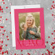Pink Modern XOXO Photo Classroom Valentine Holiday Card with pink and red X's and O's and a script signature name.