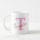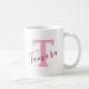 "Start your mornings with style and personalization with this Pink Monogram Coffee Mug, customized with your name or initials. Featuring a soft blush pink background and elegant monogram design, this mug adds a chic and personal touch to your coffee or tea routine. Made from durable ceramic, it’s perfect for daily use at home, in the office, or as a thoughtful gift. Ideal for birthdays, holidays, or special occasions, this custom mug combines practicality with elegance. Brighten your day or surprise a loved one with a unique, personalized keepsake they’ll use and cherish every day."