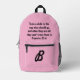 Pink Monogram Custom Bible Verse Proverbs 22:6 Printed Backpack