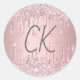 Pink monogram initials dusty rose glitter classic round sticker