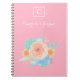 Modern watercolor floral monogram script name, elegant notebook, pastel blush pink teal girly journal. On trend floral roses, dahlias, snapdragons, eucalyptus, beautiful botanical design. Personalise name, script, monogram with modern typography.
