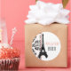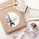 Pink Monogrammed Damask Eiffel Tower Wedding Classic Round Sticker