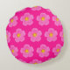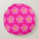 Pink Moss Rose Flower Seamless Pattern on Round Cushion