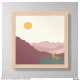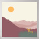 Boho abstract landscape with a full moon and pink mountains poster; a modern mid-century print with a beautiful small deer napping under grass.