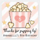Pink Movie Popcorn Thank You Birthday Party Favour Square Sticker