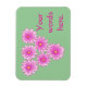 Decorative design of pink mums with yellow centres, with a placeholder for your text, is printed on custom magnets. The text can easily be customised on the template form. The background is light green and can be customised to any colour of your selection. There are matching items in this store. Thank you for shopping at CherylsArt on Zazzle.