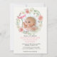Celebrate your sweet baby girl's Annaprashan with a lovely keepsake invitation that features her photo surrounded by a delicately hand watercolored blush and ivory rose floral wreath with foliage. Art copyright, Audrey Jeanne Roberts.