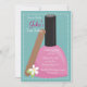 CUTE Pink Nail Polish Birthday Party Invitation What a great way to get your party started with our makeup party invitation. Our invite features a bottle of purple nailpolish with a nail file and flower on a teal background. Perfect for your makeover party! Just personalise with your birthday info and you're all set to go! Matching thank you card, stickers and postage available in our shop. ©Kelly Medina