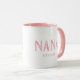 Nana coffee mug design with established year featuring a pink stamped font set on a white background. Click customise to edit the background colour!. Visit our shop to view this mug in a large assortment of grandfather names.