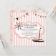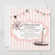 Illustration of a sailboat, helm, anchor and a party banner on a pink and white stripes. Fun and unique birthday invitation, perfect for kids who like pirates, ships and sailing.
