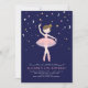 Personalised ballerina dance under the star birthday invitation. Featuring ballerina in pretty pink tutu with moons, stars, sparkles and dark navy blue background. Chic, classy and elegant. Comes with front and back design. Customise with name, age and party details. Ballerina image options available. Perfect for little ballerinas, ballet or dance under the star theme party.