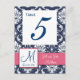 Pink Navy Blue Damask Wedding Table Number Postcard