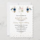 Pink Navy Blue Floral Gold Triplets Baptism Invitation