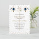 Elegant card design featuring watercolour delicate pink, navy blue flowers, green and gold leaves, a faux gold faded cross, faux gold confetti, on a white background. Use Personalize tool to add your info. For matching items, please, visit my Twins Religious Event Collection.