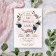 pink navy blue flowers botanical birthday invitation