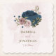 Beautiful romantic paper plate featuring navy blue pink flowers and some pretty leaves .