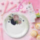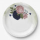 pink & navy blue flowers greenery paper plate