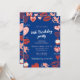 Pink Navy Blue Hearts 74th birthday invitations