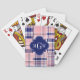 Pink, Navy Blue Preppy Patchwork Madras Monogram Playing Cards