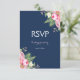 Pink Navy Blue Watercolor Flowers RSVP Card