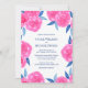 Pink Navy Blue Watercolor Flowers Wedding Invitation