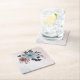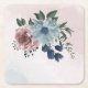Beautiful botanical wedding paper coaster featuring pink, dusty blue and navy blue flowers with green leaves.