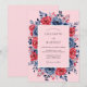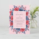 A soft blush backdrop sets the stage for deep navy blue and vibrant red watercolor roses. This painterly design creates a romantic and sophisticated mood ideal for a seasonal event. Dark indigo foliage and delicate leaves provide a striking contrast against the pale pink tones, offering a rich botanical aesthetic.