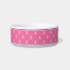 Pamper your seafaring pooch with our personalised dog bowl, featuring a pattern of tiny white nautical anchors on vibrant preppy pink, with your pet's name on the front. A thin navy border at the top and bottom adds to the preppy beach house charm of this summery doggie dish.