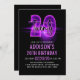 Pink Neon 20th Birthday Invitation