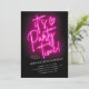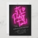 "It's Party Time!" Hot pink neon sign party invitation template that you customise for any age birthday party or any special event. Featuring a stylish neon pink and black design, it adds a touch of modern flair to your party preparations. Print your invitation or download and share it via text message, email, and social media on your mobile phone.