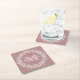 Pink Newlywed Couple Wreath Monogram Name Square Square Paper Coaster