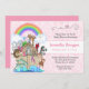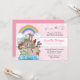 Noah's ark with all the animals two by two. Pink background with a pink heart embellishment. Customise with your shower details.delightfuldoodles