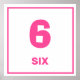 Pink number six on white background with pink border. Help your little one learn the numbers with this number six design.