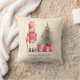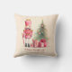 This really pretty pink Nutcracker stands on Christmas Eve next to a lovely decorated holiday tree and pink wrapped presents. This is a vintage watercolor design.
